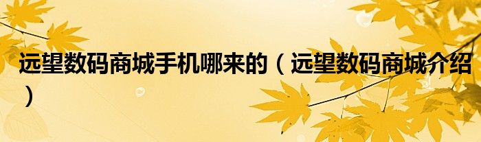 大家好,小源来为大家解答以上问题。远望数码商城手机哪来的,远望数码商城介绍很多人还不知道,现在让我们一起来看看吧!