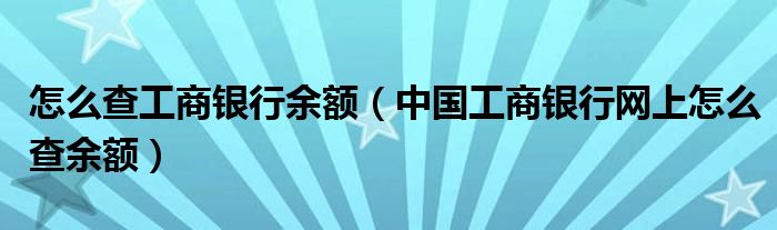 大家好,今天小悦来为大家解答以上问题。怎么查工商银行余额,中国工商银行网上怎么查余额很多人还不知道,现在让我们一起来看看吧!
