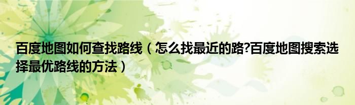 大家好,今天小悦来为大家解答以上问题。百度地图如何查找路线,怎么找最近的路?百度地图搜索选择最优路线的方法很多人还不知道,现在让我们一起来看看吧!