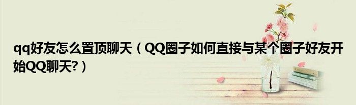 大家好,今天小悦来为大家解答以上问题。qq好友怎么置顶聊天,QQ圈子如何直接与某个圈子好友开始QQ聊天?很多人还不知道,现在让我们一起来看看吧!