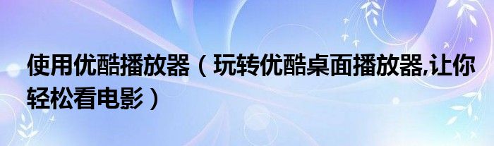 大家好,今天小悦来为大家解答以上问题。使用优酷播放器,玩转优酷桌面播放器,让你轻松看电影很多人还不知道,现在让我们一起来看看吧!