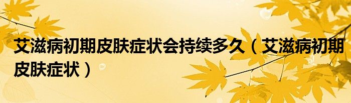 大家好,linda来为大家解答以上的问题。艾滋病初期皮肤症状会持续多久,艾滋病初期皮肤症状很多人还不知道,现在让我们一起来看看吧!
