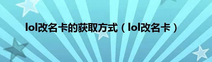 大家好,雨雨来为大家解答以上问题,lol改名卡的获取方式,lol改名卡很多人还不知道,现在让我们一起来看看吧!