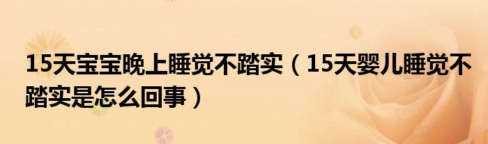 大家好,linda来为大家解答以上的问题。15天宝宝晚上睡觉不踏实,15天婴儿睡觉不踏实是怎么回事很多人还不知道,现在让我们一起来看看吧!
