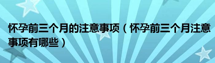 大家好,linda来为大家解答以上的问题。怀孕前三个月的注意事项,怀孕前三个月注意事项有哪些很多人还不知道,现在让我们一起来看看吧!