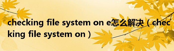 大家好,雨雨来为大家解答以上问题,checking file system on e怎么解决,checking file system on很多人还不知道,现在让我们一起来看看吧!