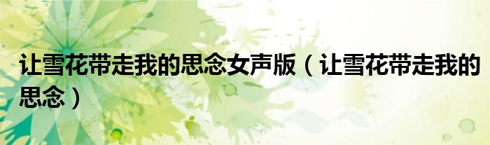 大家好,雨雨来为大家解答以上问题,让雪花带走我的思念女声版,让雪花带走我的思念很多人还不知道,现在让我们一起来看看吧!