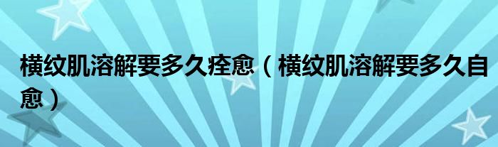1、横纹肌溶解症能不能自愈,多长时间能自愈,不能一概而论。需要根据患者的具体情况综合判断。