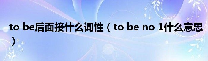 大家好,雨雨来为大家解答以上问题,to be后面接什么词性,to be no 1什么意思很多人还不知道,现在让我们一起来看看吧!