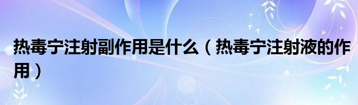 大家好,linda来为大家解答以上的问题。热毒宁注射副作用是什么,热毒宁注射液的作用很多人还不知道,现在让我们一起来看看吧!