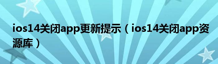 大家好,雨雨来为大家解答以上问题,ios14关闭app更新提示,ios14关闭app资源库很多人还不知道,现在让我们一起来看看吧!