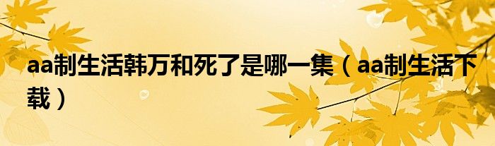 大家好,雨雨来为大家解答以上问题,aa制生活韩万和死了是哪一集,aa制生活下载很多人还不知道,现在让我们一起来看看吧!