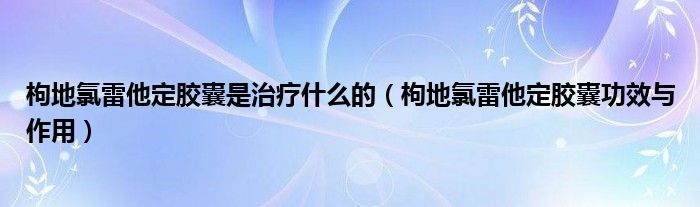 大家好,linda来为大家解答以上的问题。枸地氯雷他定胶囊是治疗什么的,枸地氯雷他定胶囊功效与作用很多人还不知道,现在让我们一起来看看吧!