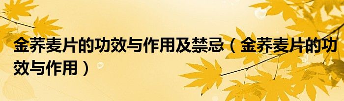 金荞麦片的功效与作用及禁忌(金荞麦片的功效与作用)