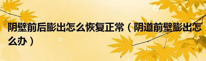 大家好,linda来为大家解答以上的问题。阴壁前后膨出怎么恢复正常,阴道前壁膨出怎么办很多人还不知道,现在让我们一起来看看吧!