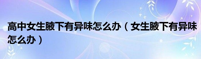 大家好,linda来为大家解答以上的问题。高中女生腋下有异味怎么办,女生腋下有异味怎么办很多人还不知道,现在让我们一起来看看吧!