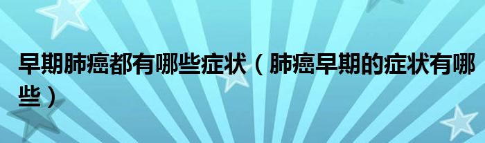 大家好,linda来为大家解答以上的问题。早期肺癌都有哪些症状,肺癌早期的症状有哪些很多人还不知道,现在让我们一起来看看吧!