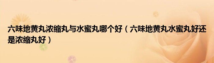 大家好,linda来为大家解答以上的问题。六味地黄丸浓缩丸与水蜜丸哪个好,六味地黄丸水蜜丸好还是浓缩丸好很多人还不知道,现在让我们一起来看看吧!