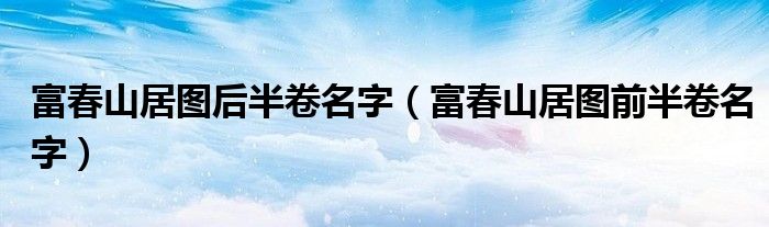 大家好,小晋来为大家解答以下问题,关于富春山居图后半卷名字,富春山居图前半卷名字很多人还不知道,今天让我们一起来看看吧!