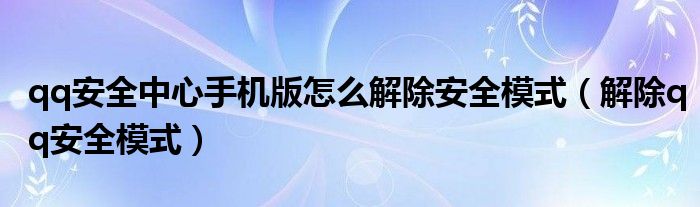 大家好,小晋来为大家解答以下问题,关于qq安全中心手机版怎么解除安全模式,解除qq安全模式很多人还不知道,今天让我们一起来看看吧!