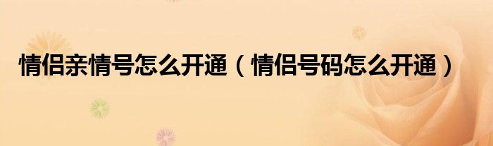 大家好,小晋来为大家解答以下问题,关于情侣亲情号怎么开通,情侣号码怎么开通很多人还不知道,今天让我们一起来看看吧!
