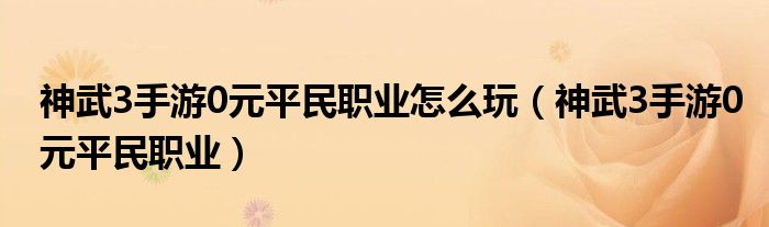 神武3手游0元平民职业怎么玩(神武3手游0元平民职业)