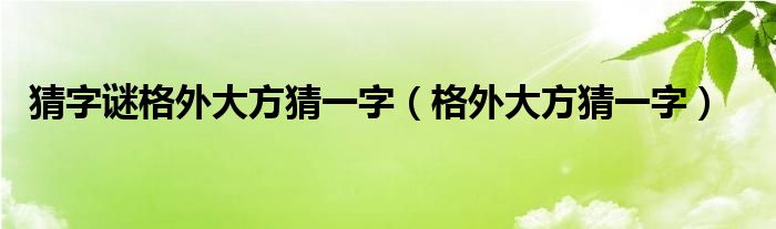 大家好,小晋来为大家解答以下问题,关于猜字谜格外大方猜一字,格外大方猜一字很多人还不知道,今天让我们一起来看看吧!