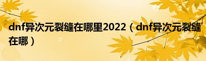 1、dnf异次元裂缝在哪