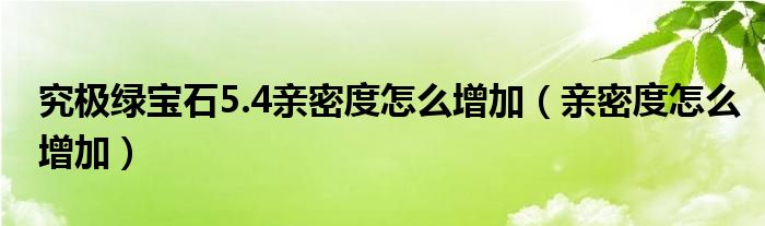 大家好,小晋来为大家解答以下问题,关于究极绿宝石5.4亲密度怎么增加,亲密度怎么增加很多人还不知道,今天让我们一起来看看吧!