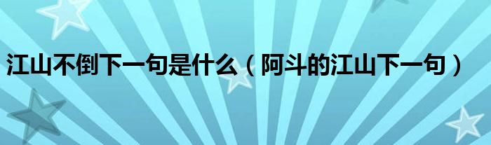 大家好,小晋来为大家解答以下问题,关于江山不倒下一句是什么,阿斗的江山下一句很多人还不知道,今天让我们一起来看看吧!
