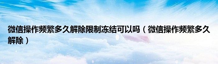 大家好,小晋来为大家解答以下问题,关于微信操作频繁多久解除限制冻结可以吗,微信操作频繁多久解除很多人还不知道,今天让我们一起来看看吧!