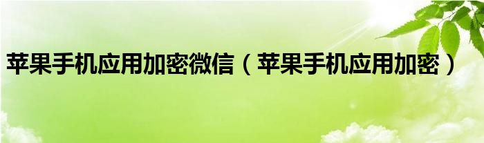 大家好,小晋来为大家解答以下问题,关于苹果手机应用加密微信,苹果手机应用加密很多人还不知道,今天让我们一起来看看吧!