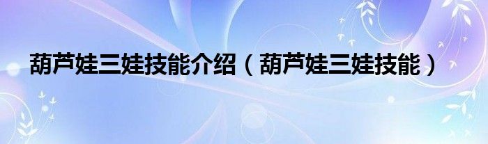 大家好,小晋来为大家解答以下问题,关于葫芦娃三娃技能介绍,葫芦娃三娃技能很多人还不知道,今天让我们一起来看看吧!