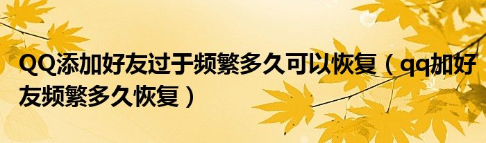 大家好,小晋来为大家解答以下问题,关于QQ添加好友过于频繁多久可以恢复,qq加好友频繁多久恢复很多人还不知道,今天让我们一起来看看吧!