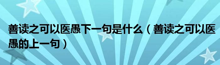 大家好,小晋来为大家解答以下问题,关于善读之可以医愚下一句是什么,善读之可以医愚的上一句很多人还不知道,今天让我们一起来看看吧!