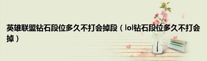 大家好,小晋来为大家解答以下问题,关于英雄联盟钻石段位多久不打会掉段,lol钻石段位多久不打会掉很多人还不知道,今天让我们一起来看看吧!
