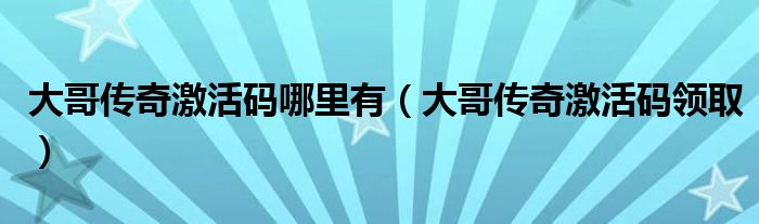大家好,小晋来为大家解答以下问题,关于大哥传奇激活码哪里有,大哥传奇激活码领取很多人还不知道,今天让我们一起来看看吧!