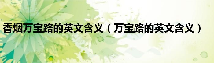 大家好,小晋来为大家解答以下问题,关于香烟万宝路的英文含义,万宝路的英文含义很多人还不知道,今天让我们一起来看看吧!