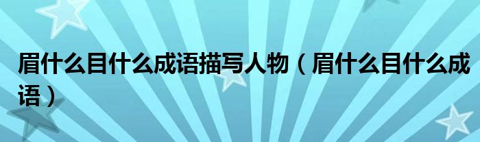 大家好,小晋来为大家解答以下问题,关于眉什么目什么成语描写人物,眉什么目什么成语很多人还不知道,今天让我们一起来看看吧!