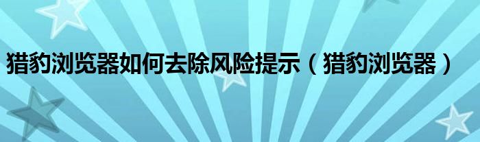 猎豹浏览器如何去除风险提示,猎豹浏览器很多人还不知道,乐乐来为大家解答以上问题,现在让我们一起来看看吧!