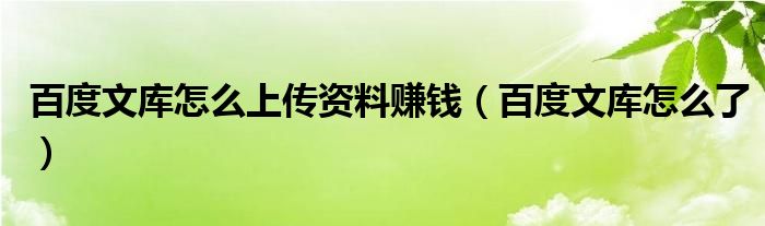百度文库怎么上传资料赚钱(百度文库怎么了)