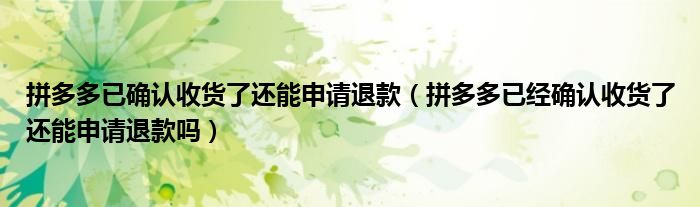 大家好,跳跳为你解答以上问题。拼多多已确认收货了还能申请退款,拼多多已经确认收货了还能申请退款吗这个问题很多人还不知道,现在让我们一起来看看吧!