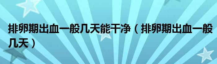 大家好,linda来为大家解答以上的问题。排卵期出血一般几天能干净,排卵期出血一般几天很多人还不知道,现在让我们一起来看看吧!