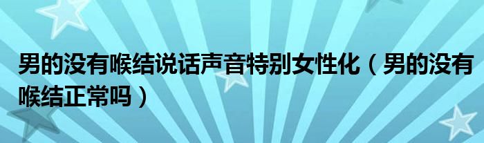 大家好,linda来为大家解答以上的问题。男的没有喉结说话声音特别女性化,男的没有喉结正常吗很多人还不知道,现在让我们一起来看看吧!