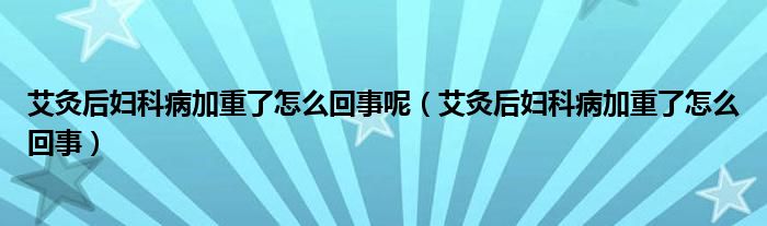 大家好,linda来为大家解答以上的问题。艾灸后妇科病加重了怎么回事呢,艾灸后妇科病加重了怎么回事很多人还不知道,现在让我们一起来看看吧!