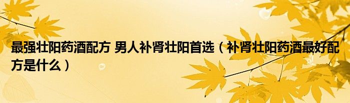大家好,linda来为大家解答以上的问题。最强壮阳药酒配方 男人补肾壮阳首选,补肾壮阳药酒最好配方是什么很多人还不知道,现在让我们一起来看看吧!