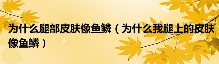 大家好,linda来为大家解答以上的问题。为什么腿部皮肤像鱼鳞,为什么我腿上的皮肤像鱼鳞很多人还不知道,现在让我们一起来看看吧!