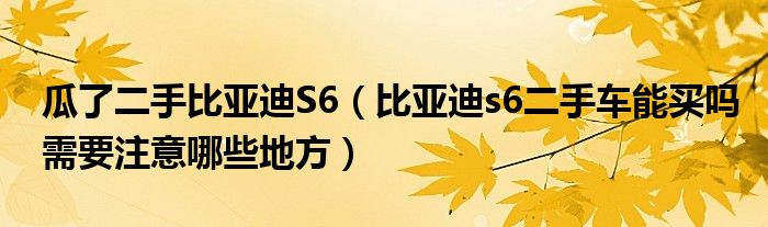 1,比亚迪s6二手车能买吗需要注意哪些地方: 比亚迪s6这款车说起来只能算是一般,所以你如果要买二手车的话,一定要注意它的这几个部位,不然你买这辆车肯定亏。第一点,车牌车牌虽然不是一个特别重要的地方,但是它能够反应这辆车到底是不是事故车。按理说,如果说一辆车的车牌受损严重的话,那它一定是事故车无疑了。如果你要买的比亚迪s6出现这种车牌受损的状况的话,还是别买了。第二点,发动机比亚迪s6的发动机一般都是1.0t的,最大的马力可以达到123匹。如果是二手车的,这款车的马力应该也不会下降的,所以你可以找相关部门或者是售卖处帮你检测一下二手车的动力值。如果这辆二手车的马力最高只能达到110左右,那只能说明这款车的发动机受损严重,已经没有什么价值了。第三点,车胎磨损比亚迪s6的车胎采用的进口橡胶制成的,它的冷热受力的能力是很不错的。按照官方给出的数据来看,这款车的轮胎能在50多度的温度下,不变形。你在选购s6二手车的时候,一定要观察车胎的变形磨损情况,如果磨损严重,那车胎肯定不是原车胎了,这也就是表明,这款车已经是翻新过的了,你买的是三手车。第四点,内部空间磨损度这一点是一定要注意的,如果原车主很注意车内环境的话,它的车内环境80%都应该是新的。这样的话,买来的二手车才是比较值得的。