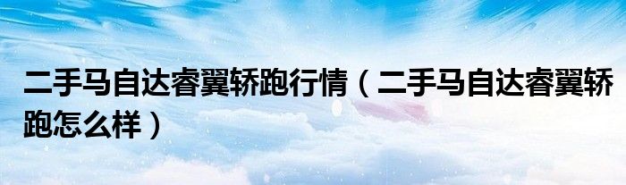 大家好,阳阳来为大家讲解下。二手马自达睿翼轿跑行情,二手马自达睿翼轿跑怎么样很多人还不知道,现在让我们一起来看看吧!