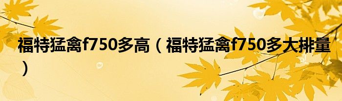大家好,阳阳来为大家讲解下。福特猛禽f750多高,福特猛禽f750多大排量很多人还不知道,现在让我们一起来看看吧!